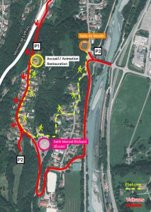 Attention, le plan de circulation communal est modifié pendant le festival. Référez-vous aux bénévoles présents pour trouver une place de parking non gênante. Dépose-minute et place handicap devant l’entrée. Privilégiez le covoiturage.